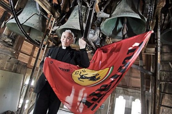 MÒDNA, ITÂGLIA - Polvere era e polvere è ritornato Don Alberto Bernardoni, parroco di Maranello e fan della Rossa. No, non Milva, la Ferrari. No, non Michelle Ferrari, la macchina, formula 1, quella roba lì. Oltre a dare messa nella Galleria Ferrari, benedire macchine e chissà cos'altro, suonava le campane a festa ogni volta che vinceva la Ferrari, per la gioia dei maranell... maranellesi? Maranelliani? Maranelloti? Marinettiani? Boh. Quest'anno, visto com'è finito l'ultimo mondiale, le campane le avrà suonate a morto. Un brutto presagio. link |
